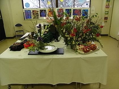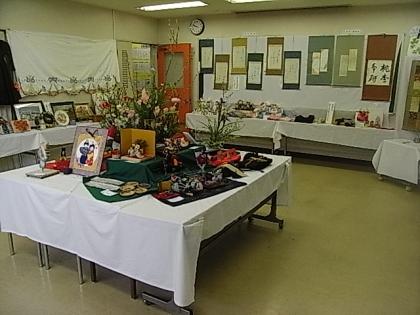 体育館の2階(体育館入口の左側の小さな入口からお入り下さい)のミーティングルームには、地域の方々、PTAの方々の出品した作品が展示されています。書道、華道、手芸、グラフィックデザイン、その他いろいろ、どれもこれも本当に素晴らしい作品で、埋め尽くされています。是非、来年度、子どもたちにこの技術を教えてほしいと思うほどです。