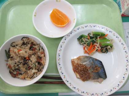 いそおこわ・さばのごまだれやき・おひたし・夢オレンジ・牛乳