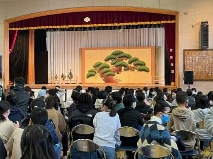 始まります!国語の学習で狂言を勉強したので、興味をもって鑑賞できそうです。