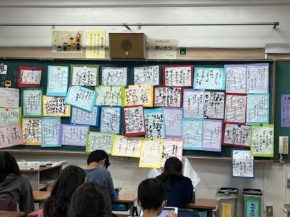 習字用の筆を使って、ちらし書きをしました。素敵な作品ばかりです。