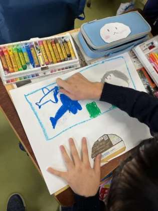 1月17日(火)2年図工 あなのむこうはふしぎなせかい
