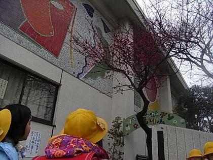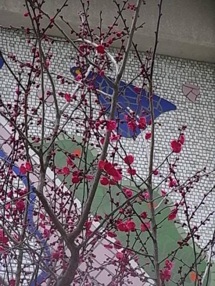 朝、正門に立っていると、「校長先生、梅の花がさいてますよ!」と、3年生くらいの女の子の声。近くの子と一緒に見上げると、門の真上に、真っ赤な梅が咲いて、もうすぐ来る春の訪れを知らせてくれました。学校の春を真っ先に見つけた女の子の、感性の豊かさがうれしくなりました。