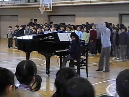今朝は、毎月1回ある音楽朝会。今月からは、今まで伴奏してくれていた6年生に代わって、5年生が伴奏する記念すべき日でした。「語りかけよう」というとても素敵な歌詞に乗せて、低学年と高学年の二部合唱が流れていました。5年生も立派に役割を果たしました。すがすがしい朝でした。