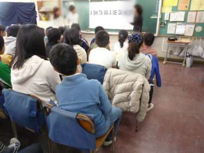 今週は「美しい日本語週間」。5年生の教室では、劇団四季の皆さんの協力をいただいて、正しい日本語の発音に仕方についてのお話を学級ごとで聞きました。日本語は母音をしっかり発音しないとしっかり聞きとれない。子音の口の開きと母音の「あいうえお」をしっかり組み合わせて母音を言うと、相手に聞き取りやすくなります。という劇団の人からの話を真剣に子どもたちは聞いていました。劇団四季の皆様、ありがとうございました。