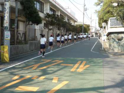 6年生にとって、小学校生活最後のマラソン大会が行われました。5校時の天気は快晴。子どもたちは、最後のマラソン大会に向けて、どの子も一生懸命走っている姿がとても気持ち良かったです。特に、校庭に帰ってきてからの残り60メートルくらいをどの子も全力疾走してゴールに向かって走る姿に、感動をおぼえました。子どもたちの成長が著しいですね。立派な最高学年の姿を見せてくれました。