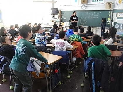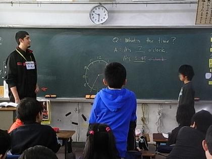 今日の午前中、4年生と5年生の各教室で、ALTのマーティン先生の授業がありました。4年生の教室を覗くと、時間の読み方の練習中でした。数字を英語でほとんどの子どもが言えているのに、びっくりしました。楽しそうに授業が進めれらていました。