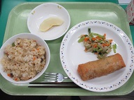 とりめし・春巻き・きゃべつのあっさりあえ・りんご・牛乳