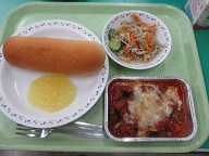 ミルクパン・なすのグラタン・じゃこサラダ・パインジャム・牛乳