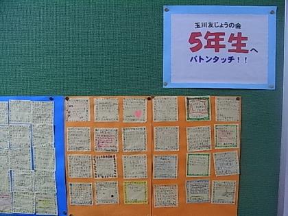 職員室前に、とても素敵な玉友のリーダーから5年生への励ましの手紙と、次期リーダー5年生の感謝の言葉と決意の手紙が掲示してあります。是非,見てください。一部を紹介します。