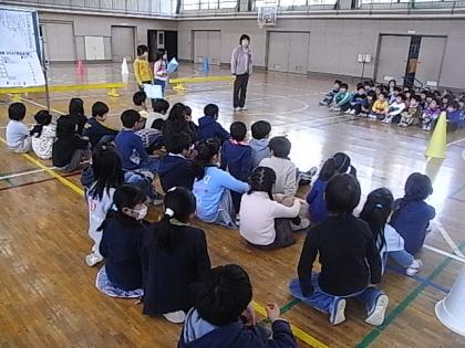 今日の2校時、体育館で、1年4組と2年4組の「なかよし会」が、生活科の授業をつかって行なわれました。2年生が1年生を迎えて、昔遊びの道具の準備をしたり、司会進行をしたり、すっかりお兄さん・お姉さんになりきって、立派に取り仕切っていました。1学期にも同じ取り組みをしたのですが、そのときとは比べ物にならないくらい、2クラスともしっかり先生の指示に従って、動いていました。最後の終わりの会も2年生がしっかりリードできました。子どもたちの成長した姿に感動しました。