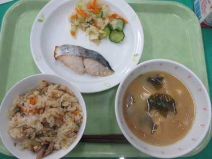 秋の香りごはん・さわらのしおこうじやき・即席漬け・みそしる・牛乳