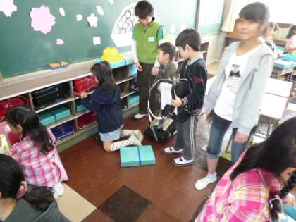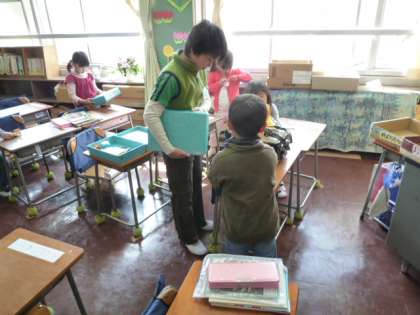 今日から朝会・集会がない朝、6年生の子どもたちが1年生の各学級に出かけて、朝の用意のお手伝いをする恒例行事が、いよいよ始まりました。1年生がランドセルから教科書や道具を出すお手伝いやランドセルをロッカーにしまうい手伝いなど、いろいろしてもらっています。1年生への優しい声かけも聞くことができます。しばらくの間、よろしくお願いいたしますね。