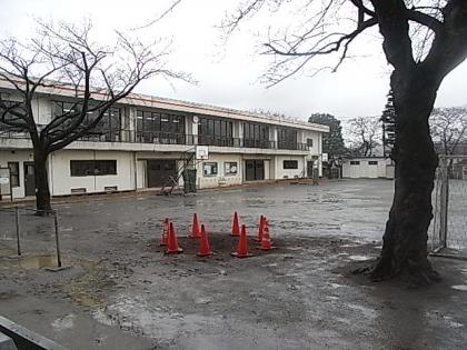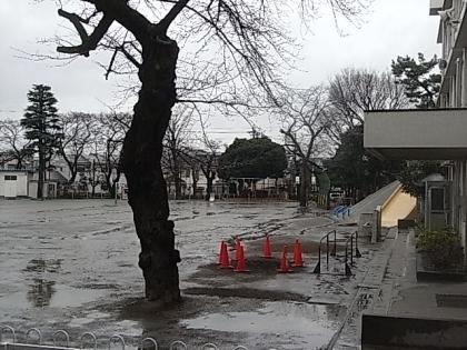 今朝はあいにくの雨。植樹会を行なおうと思ったのですが、できませんでした。来週の月曜日に延期しました。校庭を見ると、3本の桜がないために、まるで歯が抜けたような不思議な感覚になります。