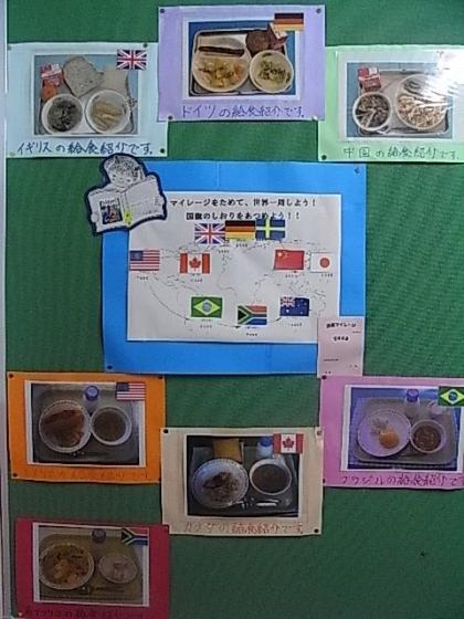 今日の給食は、世界の料理の日で、韓国の料理を紹介する日でした。今までに、イギリス、ドイツ、南アフリカ、アメリカ、カナダ、ブラジル、中国の料理の紹介を終わりました。今日の韓国料理は、豆腐チゲとプルコギ、デコポン、牛乳、ごはんでした。和牛のプルコギをとてもおいしくいただきました。世界の料理の紹介は、実は、図書館の本の貸し出しのマイレージにヒントを得て行なってきました。