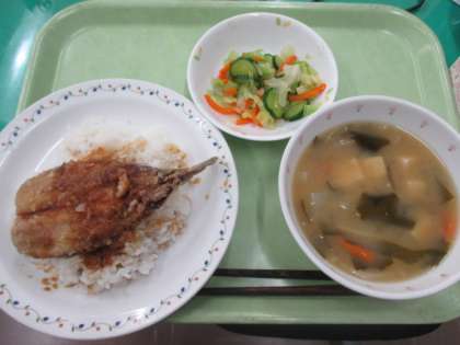 いわしのかば焼き丼・そくせきづけ・根菜のみそ汁・牛乳