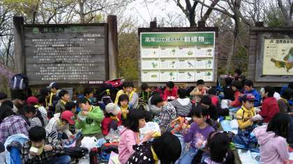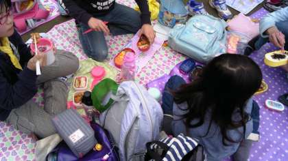 琵琶滝コースの最後の難関の200段くらいある階段を登りきって、やっと頂上に到着。頂上に全員到着を確認してから、待ちに待ったお弁当の時間になりました。