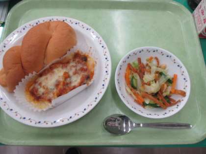 米粉パン・パテシノア・カリカリ豆のサラダ・牛乳