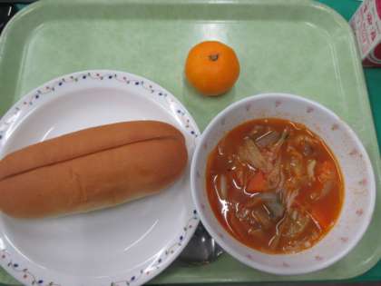 セサミコッペパン・トマトの野菜スープ・みかん・牛乳