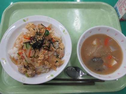 親子丼・根菜のみそしる・牛乳
