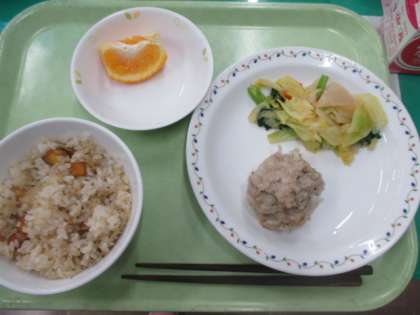 山坂達者めし・手作りしゅうまい・やさいのちゅうかあえ・オレンジ・牛乳