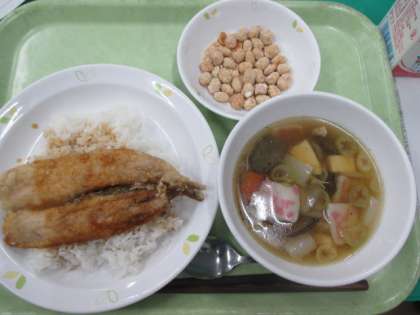 いわしのかば焼き丼・きなこまめ・けんちんじる・牛乳