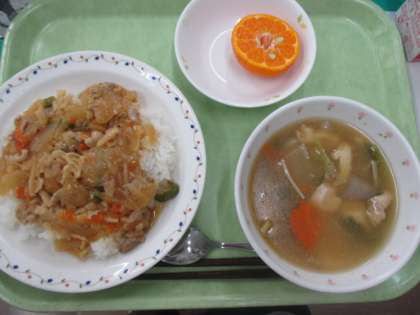 スタミナどん・とっちゃなげ汁・ポンカン・牛乳