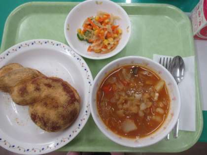 きなこ揚げパン・まめまめスープ・大根サラダ・牛乳
