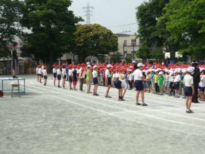 全校で本年度初めて、運動会の隊形の練習をしました。各学年が赤と白に分かれて、整列すると、運動会が近づいてきたなと感じました。人数に対して校庭がせまいために、十分に体操隊形に広げられない状況もありますが、何とか収まって体操ができる隊形に移動できました。いよいよ来週の土曜日は、運動会です!