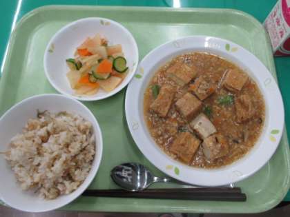 じゃこごはん・生揚げのそぼろあんかけ・福神漬け風サラダ・牛乳