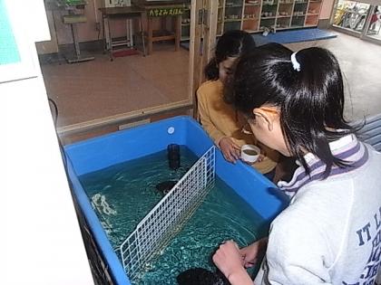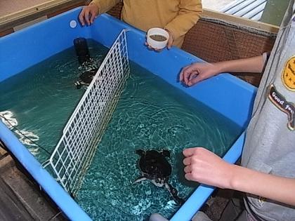 朝8時、カメボラの子どもたちが、朝ご飯を食べさせています。2匹ともとても食欲旺盛で、元気です。ご苦労様。