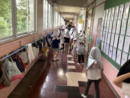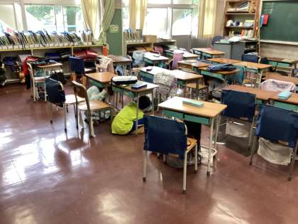 地震を想定した避難訓練を行いました。突然のサイレンにも慌てず、冷静に行動できました。