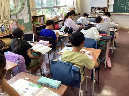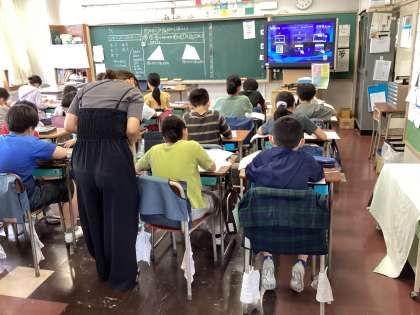形についての学習です。見本と同じ形で同じ大きさのものを選び出します。向きが違うと違う形に見えるなあ・・・。