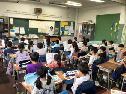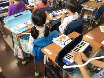 鍵盤ハーモニカの練習風景です。まだ始めたばかりですが、上手に音が出せました。