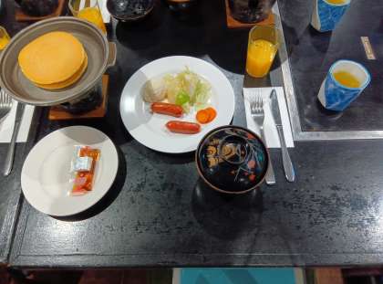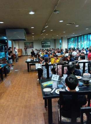 朝食です初日に班で作った短歌大会の結果発表もありました。