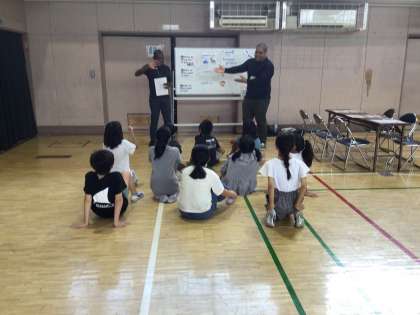 外部のネイティブスピーカーの先生による英語の授業です。玉川小学校のザイオン先生も with us!