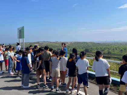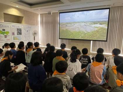 中央防波堤埋立処分場の見学をしています。