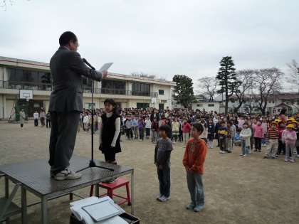 今日の修了式は、本年度全員が集まる最後の日となります。各学級の代表が校長先生から修了証を受け取りました。修了式では、校長先生から「終業式と修了式の違い」についてマラソン競技を例にしてお話がありました。最後に、1年生から4年生までが、明日の卒業式に参加できないので「6年生、ご卒業おめでとうございます。」在校生代表で出席してくれる5年生に「よろしくお願いします」と呼びかけてもらいました。