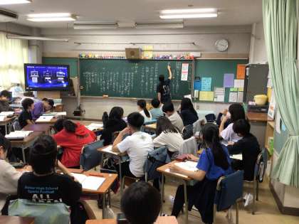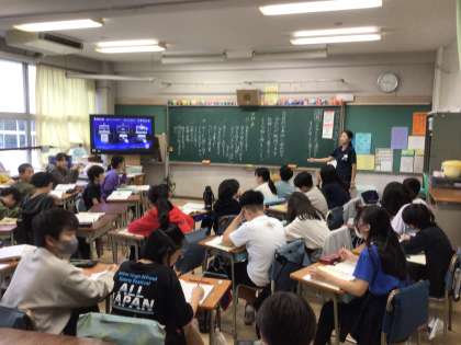 今日の国語では、伝え方について学びました。話し合いがしやすいように机の並べ方を工夫しています。