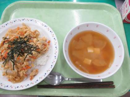 親子丼・根菜のみそ汁・牛乳
