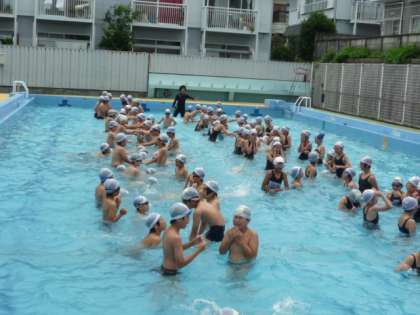 3,4校時は、5年生のプール開きが行われました。プールの授業での注意事項を先生たちから話をし、模範泳法を児童代表にやってもらいました。台風一過の晴天でしたが、風が時より強く吹いて、水の中の方が気持ちよさそうでした。