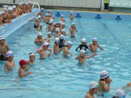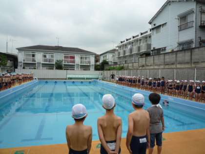 ちょっと曇り空の中、2年生のプール開きが3,4時間目に行われました。代表の子どもたちが4人出て、今年の目標をしっかりと発表してくれました。「今年は25メートルを泳ぎ切りたい。」「平泳ぎができるようになりたい。」「苦手なので、10メートルまでは泳ぎたい。」と一人ひとりの目標を言ってくれました。立派でした。