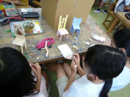 2時間目に図工室をのぞくと、6年3組の皆さんが「未来の部屋と自分」という作品を作っていました。どの子も真剣に作品作りに打ち込んでいて、作品がとても楽しそうでした。