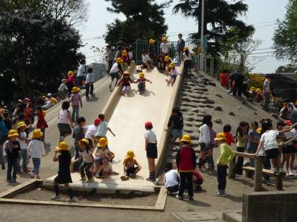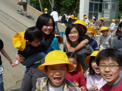 対面式が終わり、中休みに校庭を眺めると、1年生の黄色い帽子があちらこちらでかたまって見えます。特に力山は1年生に大人気で、あまりにも集まりすぎるので、曜日制限をして2クラスずつで遊ぶことにしています。中には、6年生のお兄さん、お姉さんにおんぶや抱っこをしてもらいながら楽しんでいる1年生もいます。