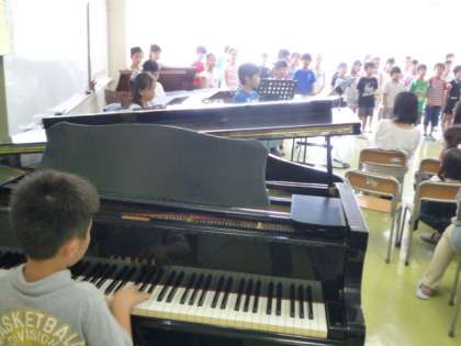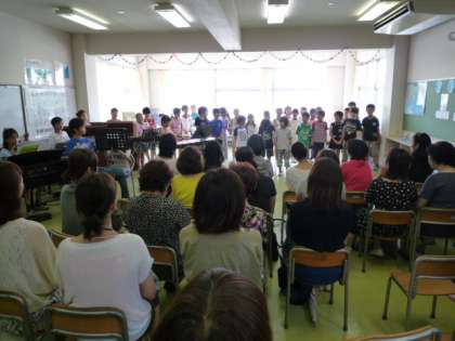 3時間目に、3年3組の大音楽会に招待されたので、第2音楽室に出かけました。たくさんの保護者がお見えになっていました。代表の子どもがあいさつした後、5曲もすばらしい合唱と演奏を披露してくれました。一人ひとりが大きく口をあけて、みんなで力を合わせて歌っている姿に感動しました。演奏も息が合ってとてもすてきでした。5曲が終わると、会場から「アンコール!アンコール!」の声がかかり、子どもたちはうれしそうに最初から演奏してくれました。とてもいい音楽会でした。
