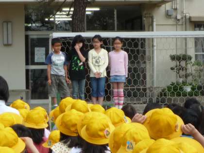 今日の全校朝会から、スピーチ活動が始まりました。今月は4年生。4年生になってがんばることや玉川小に転校してくる前のこと、新しい担任の先生のことなどを上手に自分の言葉でスピーチすることができました。