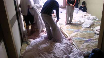 子どもたちはほとんどの子が11時頃にはしっかりと寝てくれました。朝の6時前までしっかり寝ていました。体調の悪い子は誰もいず、元気に全員で小田代が原ハイキングができます。朝、起きて、自分たちの寝具の片づけしていました。