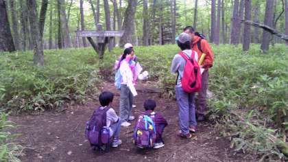 いよいよ湯元源泉から小田代が原、そして竜頭の滝までのハイキングが始まりました。天気もお昼までずっと薄曇りで、ハイキングにぴったりの天気でした。男女仲良く行動班で行動し、木道をすれ違う人に気持ちよく挨拶することができました。幻の小田代が原の湖も見ることができました。