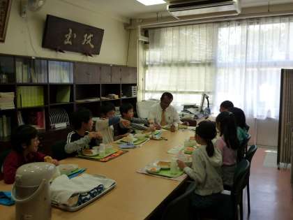 今日からは、5年2組の子どもたちとの会食を行ないました。初めに、全員で「いただきます」をして、食べながら自己紹介をひとりずつ言ってもらいました。いろいろな楽器を演奏するのが好きな子、国の名前を覚えるのが好きな子、ディズニーのことが詳しい子など、面白い話を楽しくしてくれました。最後は、みんなで温かいお茶をご馳走になって会食を終えました。
