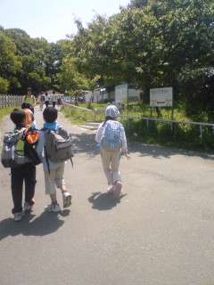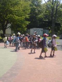こどもの国の中を班ごとにオリエンテーリングをしました。ゴール付近の様子です