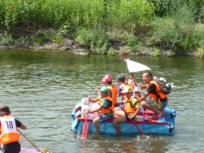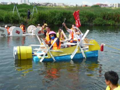 今年のアドベンチャーin多摩川には、玉小から先生方チームの1艇(ルパン号)と子どもたちと先生のチーム4艇が参加しました。どのチームのいかだもとても健闘して、見事に完走することができました。支えてくださった、おやじの会の皆様ありがとうございました。当日の5艇のいかだの搬送のために、軽トラを出していただいたり、会場まで運んでいただいたり、大変お世話になりました。また、たくさんの保護者の方が応援に来てくださいました。ありがとうございました。